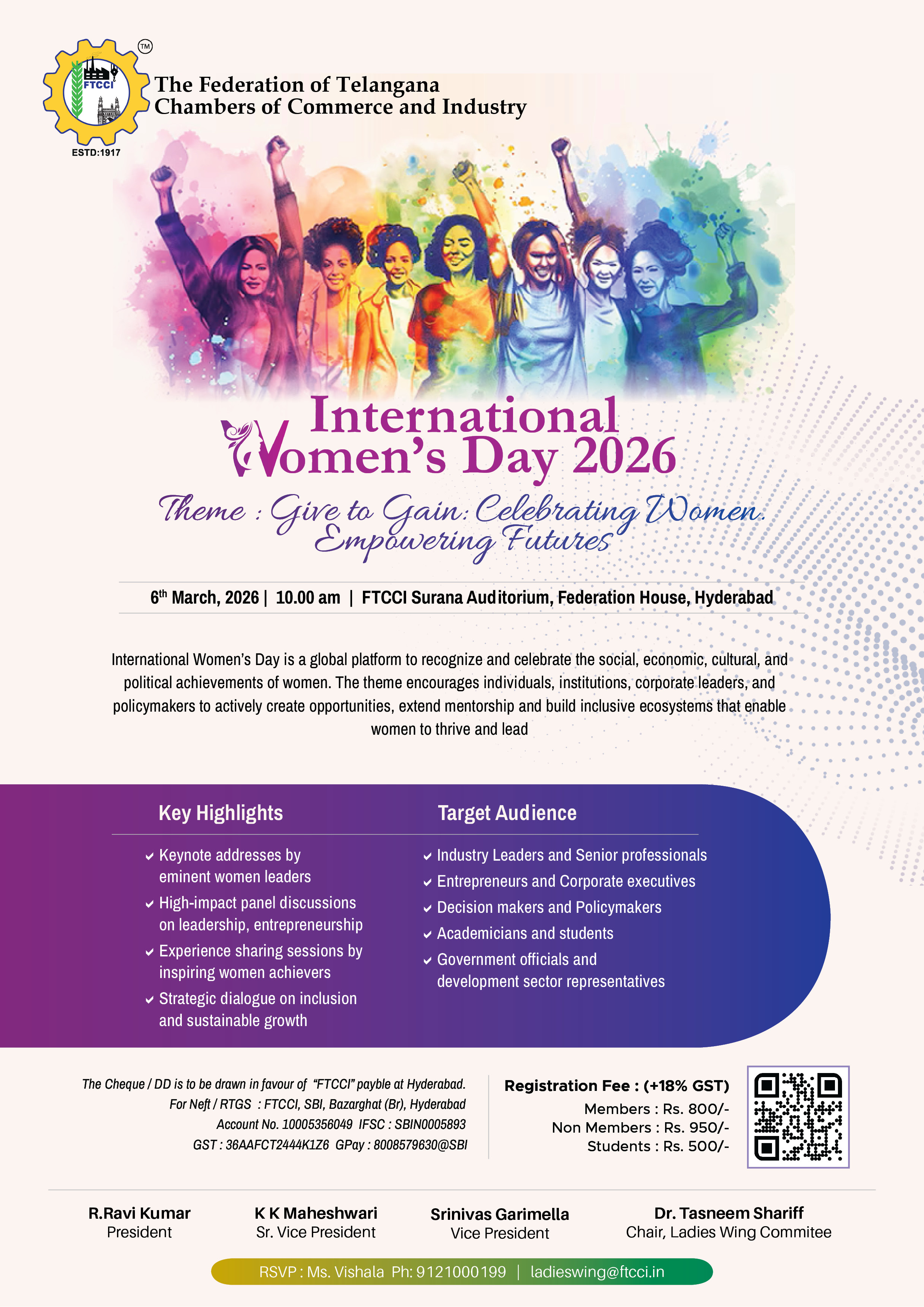 International Women's Day 2026 : Theme : Give to Gain: Celebrating Women. Empowering Futures : 6th March, 2026 at Federation House, FTCCI, Hyderabad